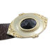 Стильный и модный из итальянской натуральной кожи с металлической узорчатой пряжкой (под золото), в центре большой красивый многограннo-овальный камень (черный).
