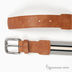 Оригинальный ремень для мальчика из плотной ткани. С кожаными вставками и металлической пряжкой.