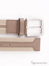 Ремень Schuchard & Friese изготовлен из ткани бежевого цвета со вставкой из натуральной кожи цвета кофе с молоком. Модель дополнена гладкой пряжкой квадратной формы. Такой ремень отлично сочетается с легкими брюками и джинсами. Упакован в подарочный пакет от производителя. Размеры: ширина 4 см, длина 120 см.