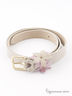 Ремень узкий Schuchard & Friese изготовлен из натуральной кожи бежевый лак, розовые цветы. Модель дополнена квадратной пряжкой под золото. Такой ремень отлично сочетается с платьями, юбками, рубашками, туниками. Упакован в подарочный пакет от производителя.