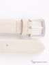 Ремень Schuchard & Friese изготовлен из натуральной кожи, цвет: молочный. Модель дополнена квадратной серебристой пряжкой. Такой ремень отлично сочетается со всеми предметами повседневного гардероба. Упакован в подарочный пакет от производителя.