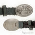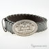 Классический ремень с кожаными впрлетениями и большой пряжкой.