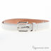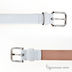 Белый тонкий ремешок с металлической пряжкой серебристого цвета.