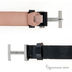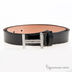 Черный кожаный ремень с оригинальной металлической пряжкой серебристого цвета.