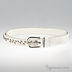 Узкий женский ремешок с маленькими клепками по длине. Крепление пряжки прошито нитями. 5 отверстий для закалывания.