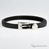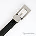 Узкий женский ремешок с прямоугольной пряжкой. Текстура материала с небольшими трещинками. 5 отверстий для закалывания. По периметру отстрочка нитью. Крепление пряжки прошито нитями. Оригинальное оформление держателя ремня: металлическая петля с круглым декором.