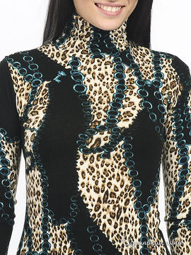 Водолазка Royal Box женская, цвет черный / бирюзовый / принт леопард