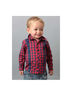 Рубашка прямого силуэта с отложным воротом-стойкой застегивается на пуговицы.