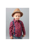 Рубашка прямого силуэта с отложным воротом-стойкой застегивается на пуговицы.