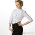 Рубашка с воротником-стойкой, декорированная двусторонним жабо вдоль планки, рукава 3/4.
