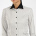 Белая рубашка в черный горошек с черной отделкой воротничка и манжет.