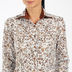 Белая рубашка с темно-коричневым орнаментом и коричневой отделкой воротничка и манжет.