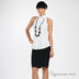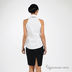 Белая классическая рубашка без рукавов. Отложной ворот-стойка, застежка на пуговицы.