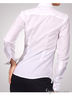 Детали: отложной воротник на небольшой стойке, застежка классическая на пуговицах, длинные рукава с широкой манжетой.