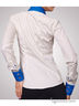 Детали: отложной воротник не небольшой стойке, длинные рукава с широкой манжетой, застежка классическая на пуговицах.