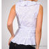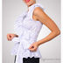 Детали: V-образный вырез с запахом окантован воланом; завязывается спереди на хлопковые ленты; оригинальный принт