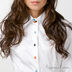Замечательная рубашка из хлопка белого цвета, с разноцветными пуговицами. Тонкая качественная ткань из хлопка обеспечивает идеальную посадку по фигуре.