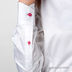 Замечательная рубашка из хлопка белого цвета. Манжета рукава с отделкой в разноцветную полоску, с пуговицами. Тонкая качественная ткань из хлопка обеспечивает идеальную посадку по фигуре.