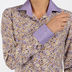 Тончайшая рубашка цвета небеленого льна в орнамент из цветов с сиреневой отделкой воротничка и манжет.