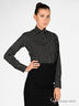 Очаровательная рубашка из хлопка черного цвета с белоснежным орнаментом. Планка-застежка на пуговицах. Тонкая качественная ткань из хлопка обеспечивает идеальную посадку по фигуре.