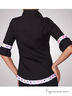 Детали: отложной воротник на небольшой стойке, короткие рукава с небольшим отворотом, декор из отделочной ткани.