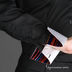 Черная рубашка с манжетой под запонку и очень симпатичной отделкой из полосатого шелка. Планка застежки с внутренней стороны и манжеты рукавов имеют отделку шелком в цветную полоску. Манжета застегивается на запонку. Фактура ткани с легким шелковистым блеском. Тонкая качественная ткань из хлопка обеспечивает идеальную посадку по фигуре.