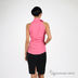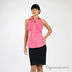 Блузка цвета фуксии с каскадом из рюшей, без рукавов.