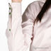Замечательная рубашка из хлопка жемчужно-розового цвета. Манжета рукава с зеленой отделкой в тон пуговицам.