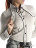 Приталенный батник, рубашечного покроя, из мягкого трикотажа джерси. Застежка на пуговицы. Воротник необычной формы поможет создать новые образы. Отворачивающиеся манжеты позволяют регулировать длину рукава.