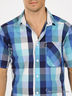 Стильная рубашка классического кроя из хлопка. Короткий рукав. Отложной воротник. Застегивается на пуговицы. Спереди небольшой карман на пуговице. Фигурный крой подола.