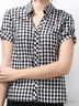 Рубашка с короткими рукавами и отложным воротником. Модель прямого кроя выполнена из качественного материала привлекательной расцветки. Отличный вариант на каждый день.