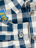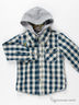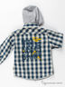 Рубашка прямого силуэта с эффектом двойки выполнена из плотного хлопчатобумажного материала. Капюшон, придающий изделию эффект двойки, отстегивается. Рубашечный ворот, застежка на пуговицы, манжеты на пуговице. Два нагрудных кармашка. Полочка украшена нашивкой. Спинка декорирована принтами.