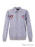 Рубашка с длинными рукавами и отложным воротником. Спереди модель дополнена застежкой на пуговицы. Низ модели и манжеты выполнены в виде трикотажной резинки. Изделие украшено декоративным принтом спереди. Отличный вариант на каждый день.