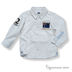 Стильная рубашка с длинным рукавом, с голубыми вставками на манжетах и сбоку, с оригинальной вышивкой на груди и аппликацией на рукаве.