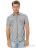 Детали: отложной воротник, застежка на пуговицы, короткий прямой рукав, два накладных кармана.