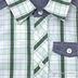 Рубашка прямого силуэта с отложным воротом-стойкой и коротким рукавом застегивается на пуговицы. Контрастные вставки.