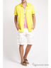 Рубашка с короткими рукавами и отложным воротником. Модель прямого кроя дополнена застежкой на пуговицы спереди. Отличный вариант на каждый день.