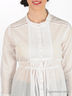 Рубашка, приталенная под грудью. Воротник- стойка. Декоративная частая строчка около пуговиц в районе груди. Кулиски под грудью. Шнурок завязывается сзади. Шнурок сзади в районе лопаток.