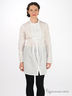 Рубашка, приталенная под грудью. Воротник- стойка. Декоративная частая строчка около пуговиц в районе груди. Кулиски под грудью. Шнурок завязывается сзади. Шнурок сзади в районе лопаток.
