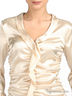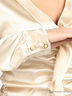 Детали: V-образный вырез, длинные рукава с манжетами на пуговицах, присборена по боковым швам, застежка-молния сбоку