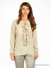 Рубашка прямого кроя из тонкой струящейся ткани. Горловина украшена воланами. Рукава присборены.