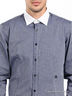 Замечательная рубашка с длинными рукавами и отложным воротником. Застежка на пуговицы. Декорирована сплошными вставками белого цвета по воротнику и манжетам изделия.