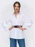 Стильная рубашка свободного кроя из поплина со спущенной линией плечевого шва. Объёмный рукав с защипами разбавляет классический образ.