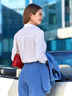 Хлопковая рубашка прямого кроя с удлиненной спинкой. Функциональная планка с пуговицами скрыта планкой с контрастной трехцветной тесьмой.
