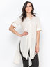 Шифоновая рубашка с удлиненной спинкой. Полотнища спинки оформлены от кокетки на запах. Изделие застегивается на пуговицы.