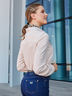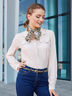 Рубашка в деловом стиле из плотного софта. Модель с воротником-стойкой и ложными нагрудными карманами. Изюминка модели – перламутровые пуговицы в тон.
