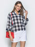 Льняная рубашка в крупную клетку. Модель свободного кроя с V-образным вырезом горловины. Хорошо сочетается с джинсами и обувью на низком ходу.