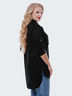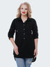Повседневная хлопковая рубашка с удлиненной спинкой. Классический отложной воротник. Застёгивается на пуговицы по планке. На полочке предусмотрены накладные карманы. Левый карман украшен декоративной нашивкой. Рукав 3/4 на манжете с хлястиком.