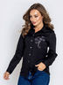 Ординарная рубашка приталенного силуэта из хлопка. Модель с отложным воротником и контрастными пуговицами по планке. Полочка дополнена авторской вышивкой.