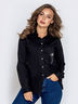 Повседневная рубашка свободного кроя из хлопка. Модель с отложным воротником и контрастными пуговицами по планке. Полочка украшена авторской вышивкой.